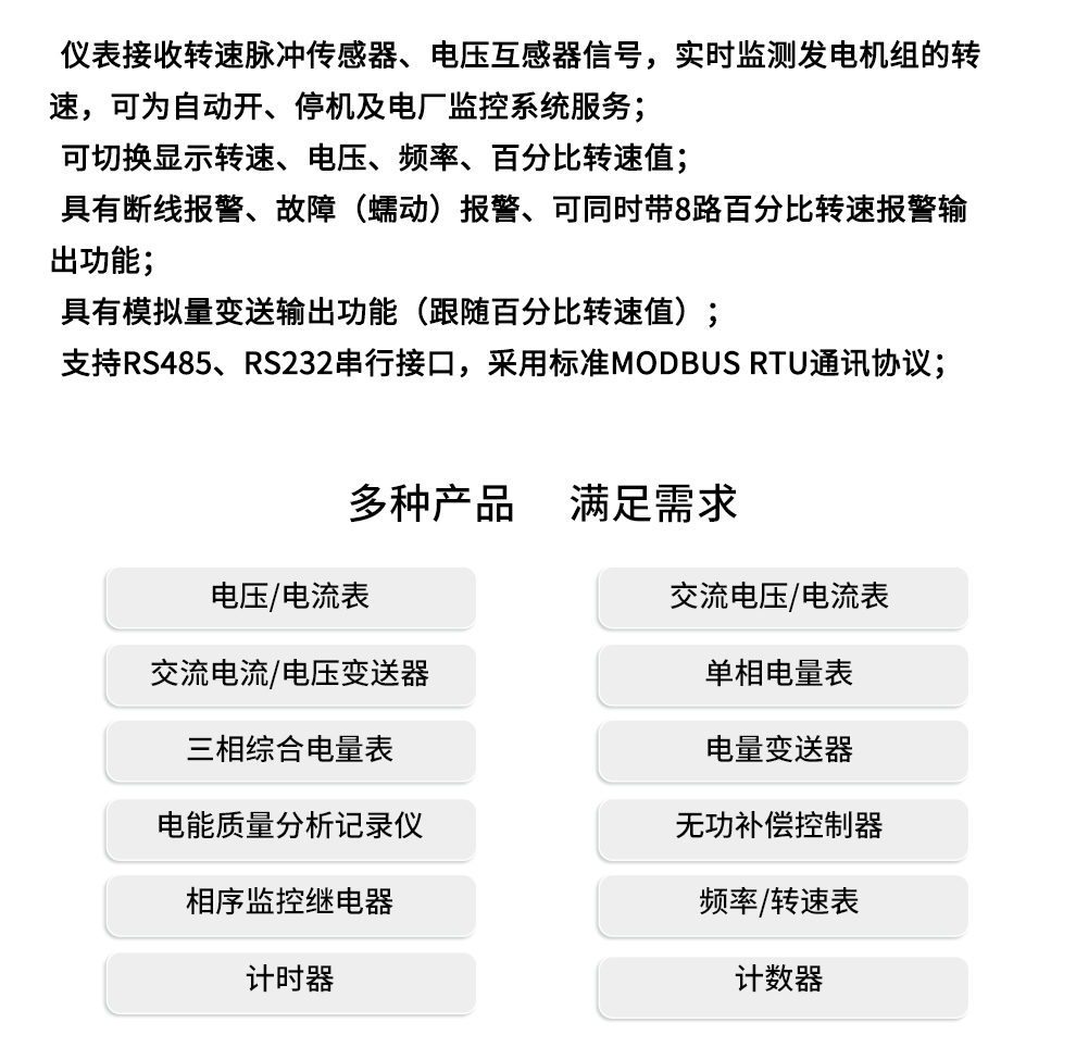 虹潤公司是專業(yè)生產(chǎn)頻率表的國家專精特新“小巨人”企業(yè)。生產(chǎn)的電廠專用轉(zhuǎn)速表,具有雙屏LED 數(shù)碼顯示,脈沖/電壓主輔輸入,峰值記憶,支持RS485/RS232通訊等特點。產(chǎn)品獲得基于儀表殼體、一種儀表電源等2項國家發(fā)明專利,主持起草流程工業(yè)中電氣/儀表和控制系統(tǒng)的試車國家標準,通信系統(tǒng)多通道數(shù)據(jù)采集控制終端規(guī)范軍用標準,以及現(xiàn)場設(shè)備集成等5項智能制造國家標準。參與國際5G標準制定,取得頻率轉(zhuǎn)速儀表等2項相關(guān)軟件著作權(quán)。產(chǎn)品廣泛應用于電力系統(tǒng)、機械制造、汽車工業(yè)、航空航天、船舶海事、冶金礦山等行業(yè)的頻率與轉(zhuǎn)速參數(shù)監(jiān)測。