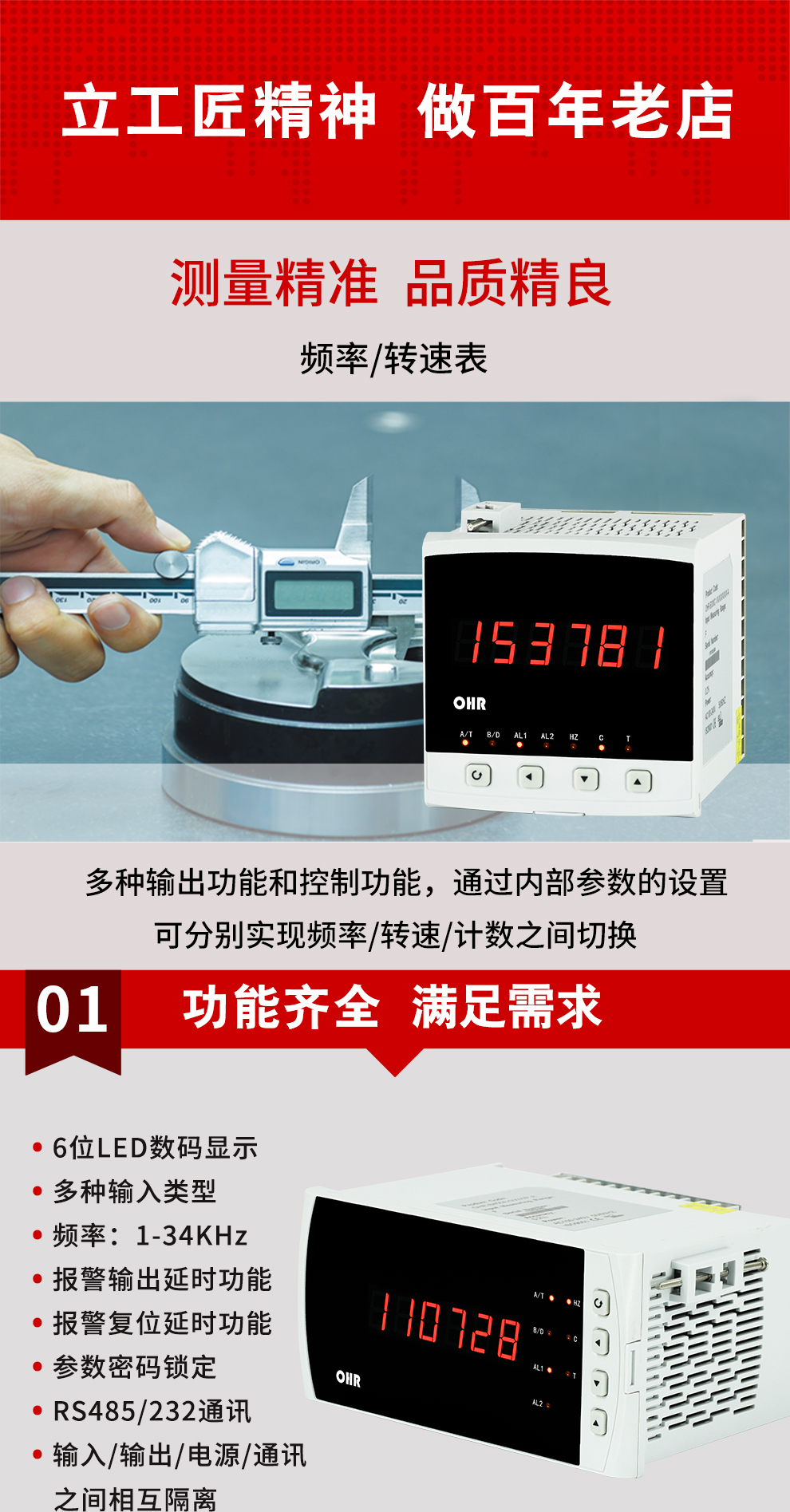 虹潤(rùn)公司是專業(yè)生產(chǎn)頻率表的國(guó)家專精特新“小巨人”企業(yè)。生產(chǎn)的頻率/轉(zhuǎn)速表,具有可實(shí)現(xiàn)頻率、轉(zhuǎn)速與計(jì)數(shù)功能的切換,報(bào)警繼電器輸出,變送輸出,RS485通訊等特點(diǎn)。產(chǎn)品獲得基于儀表殼體、一種儀表電源等2項(xiàng)國(guó)家發(fā)明專利,主持起草流程工業(yè)中電氣/儀表和控制系統(tǒng)的試車國(guó)家標(biāo)準(zhǔn),通信系統(tǒng)多通道數(shù)據(jù)采集控制終端規(guī)范軍用標(biāo)準(zhǔn),以及現(xiàn)場(chǎng)設(shè)備集成等5項(xiàng)智能制造國(guó)家標(biāo)準(zhǔn)。參與國(guó)際5G標(biāo)準(zhǔn)制定,取得頻率轉(zhuǎn)速儀表等2項(xiàng)相關(guān)軟件著作權(quán)。產(chǎn)品廣泛應(yīng)用于電力系統(tǒng)、機(jī)械制造、汽車工業(yè)、航空航天、船舶海事、冶金礦山等行業(yè)的頻率與轉(zhuǎn)速參數(shù)監(jiān)測(cè)。