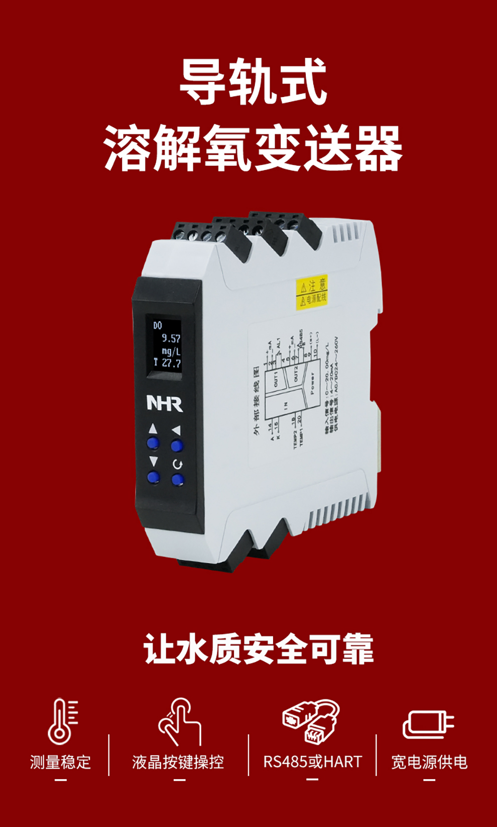 虹潤公司是專業(yè)生產(chǎn)水質(zhì)分析儀的國家專精特新“小巨人”企業(yè)。生產(chǎn)的導(dǎo)軌式溶解氧變送器,具有測量穩(wěn)定不跳字,液晶按鍵操控,變送輸出精準,寬范圍電源供電,RS485或HART通訊等特點。產(chǎn)品獲得一種高精度在線溶解氧測量儀表、智能化控制器、一種信號發(fā)生裝置等3項國家發(fā)明專利;主持起草現(xiàn)場設(shè)備集成等5項智能制造國家標準,以及現(xiàn)場設(shè)備工具(FDT)接口規(guī)范、工業(yè)過程控制系統(tǒng)用模擬輸入兩位或多位輸出儀表、過程分析技術(shù)系統(tǒng)等3項國家標準;參與國際5G標準制定,取得導(dǎo)軌溶解氧變送器等3項相關(guān)軟件著作權(quán)。產(chǎn)品廣泛應(yīng)用于實驗室、水處理、環(huán)境監(jiān)測、制藥、食品、農(nóng)業(yè)、工業(yè)流程控制等諸多領(lǐng)域。